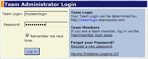 - Enter in the Team Login and password. Click the Login button.