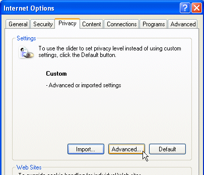 - Once in the privacy tab, click on the Advanced... button in the Settings