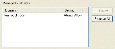 shown in the Managed Web Sites listbox.
