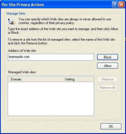 Teamopolis uses session cookies in your Internet Browser to remember what team site