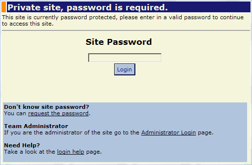 If the site password is enabled by the Team Administrator, it is a single password